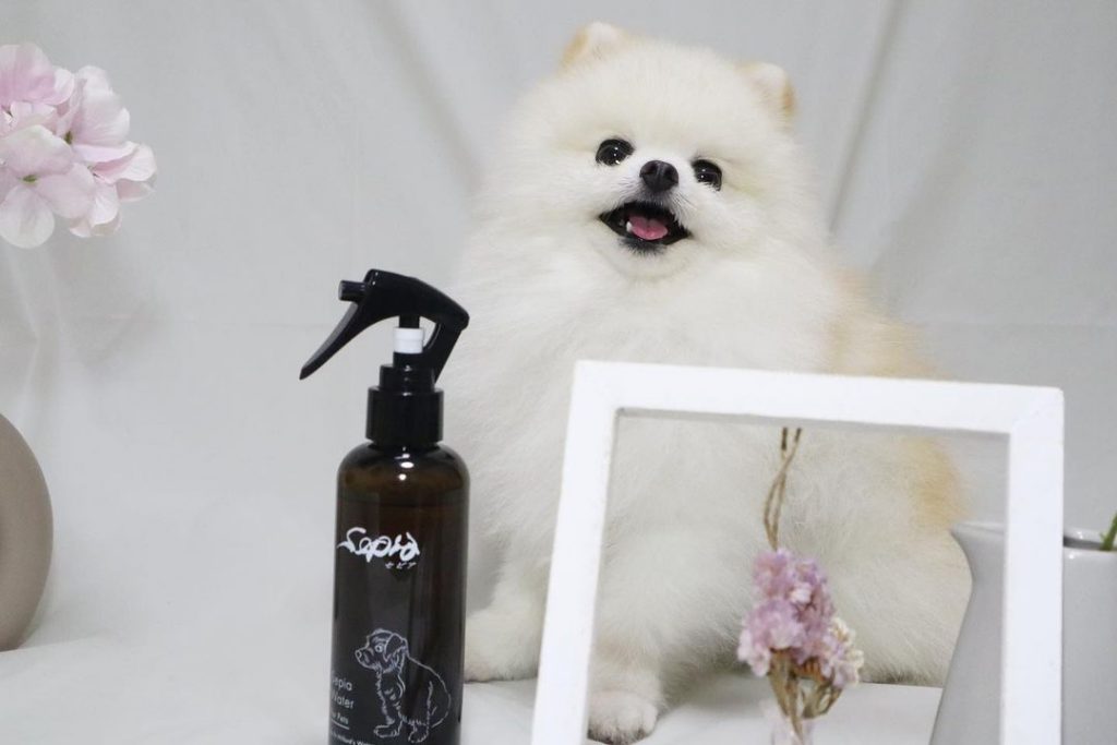 セピアウォーターをかけたシートで口周り、肛門、肉球を拭く、全身にかけた後にブラッシングする、の簡単ケア。