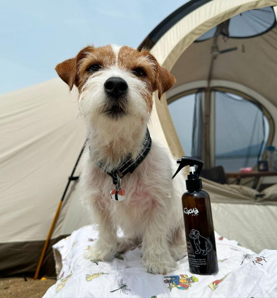 トロの愛用品セピアウォーター、キャンプの時にも持って行くんだけど草でちょっと皮膚が赤くなったときや
